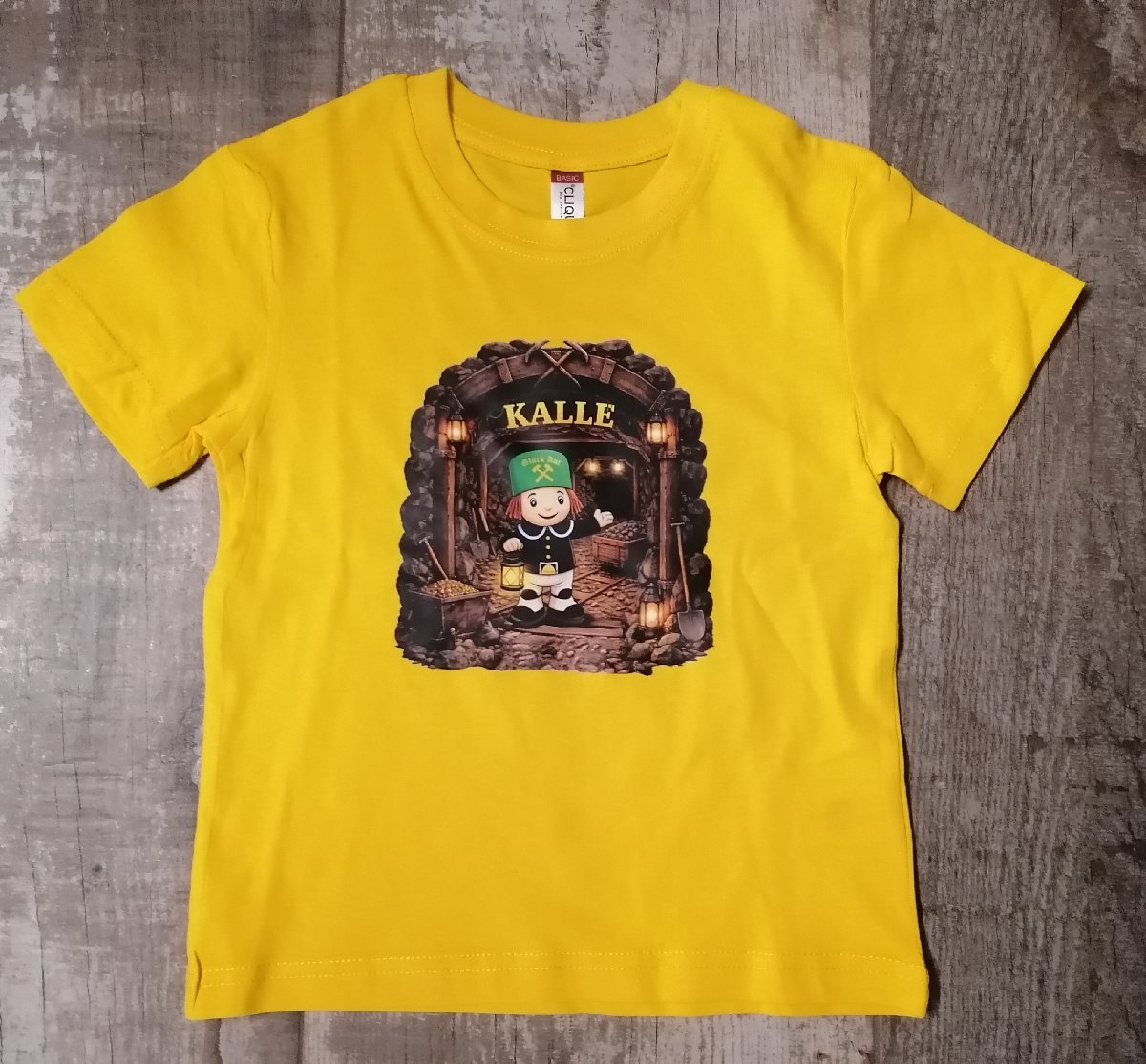 ArtNr. T0001Kinder T-Shirt „Kalle der Plüschbergmann“ – gelb, Größe 90/110